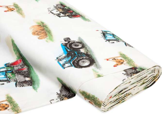 (Kostenlos herunterladen) Baumwollstoff Mit Traktor Motiv