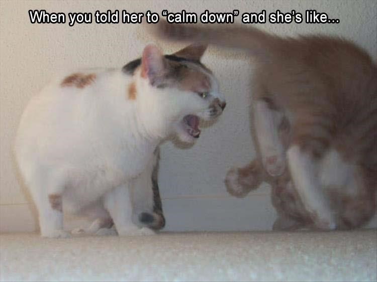By creating a mental picture of what it looks like to stay calm you can refer back to that image when you re anxious. If you ve ever tried telling a woman to calm down you ll surely be able to relate to this calm down meme collection. As for the other half of the meme starring the angry white cat its origins began on tumblr when user deadbefordeath posted a photograph of a white cat. Angry woman memes calm down angry memes i dont memes calming memes threes memes. Watch the moment kidz bop karen unleashes an angry rant on a woman riding in an uber. Yeah if you could just calm down. Fall 2019 has given us a change of season and a brand new meme.