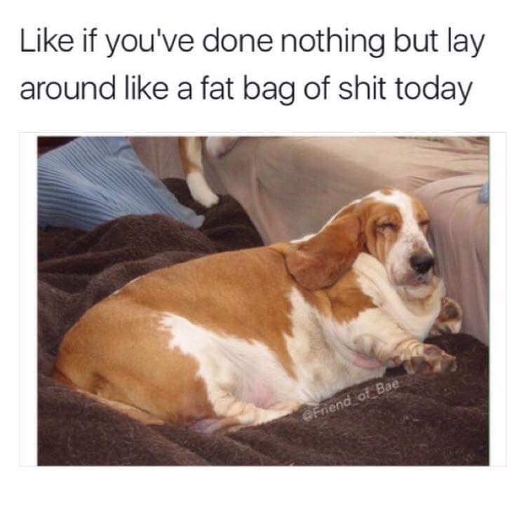 Fat dog laying down meme. See more ideas about funny animals cute animals funny animal pictures. Dog clips daily 2 156 views. Planking is a photo fad which involves lying face down. Once you have a better idea of the cause it will be easier to take the appropriate action. Below i will mention some particularly helpful things to consider when trying to figure out why your dog lays down to eat. The food puzzles and feeders below are some of our favorites. Nov 20 2017 sometimes you just need a good laugh.