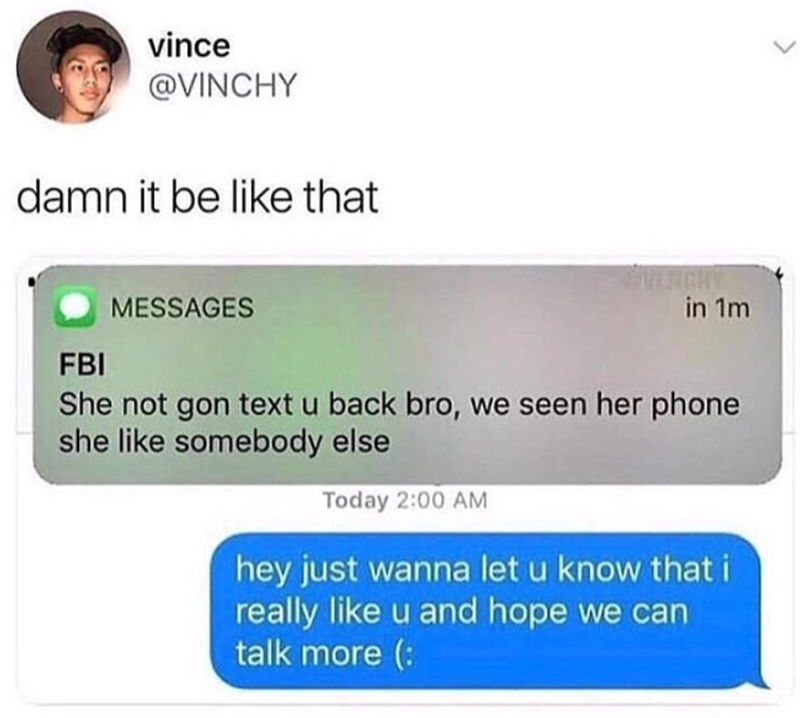 What is the meme generator. Fbi locked my phone for downloading child porn. Comedy fbi fbi memes funny humor memes tc wire the internet twitter when what you need is a message of hope find the goodness of this moment in a book in powerful words in a comforting image through the writers and artists you love and all that you hold dear. And there s been some high quality paranoia inducing black mirror memes. 40 funniest text message fails duration. Most commonly people use the generator to add text captions to established memes so technically it s more of a meme captioner than a meme. Babe send some nudes.